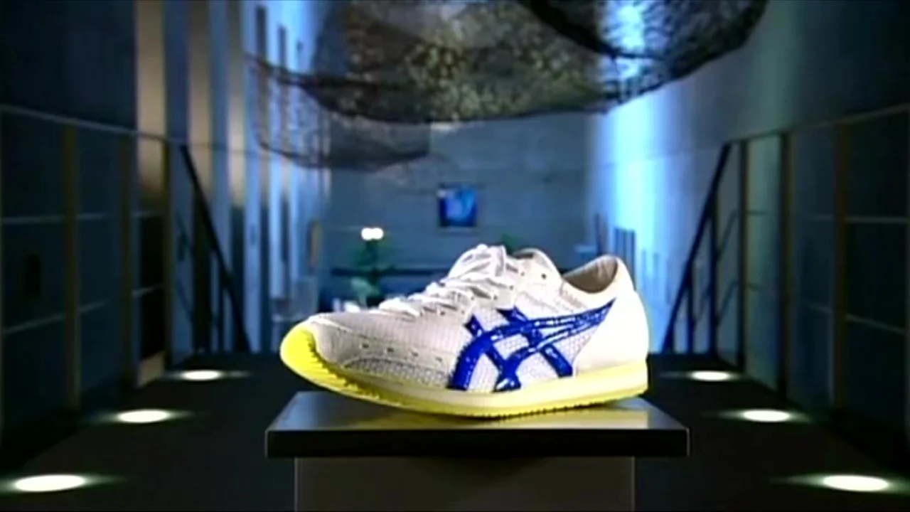Благодаря современным синтетическим материалам обувь стала гораздо легче и прочнее чем раньше, но чтобы изготовить такую обувь понадобится современная техника. Все начинается с лазерного сканирования каждой ступни. Затем бегун стает ан опорную пластину, когда резиновые пупырышки поднимаются, прибор фиксирует точный рельеф ступни. Далее тонкая струя под высоким давлением разрезает синтетическое волокно. Перемещение этой струи контролируется компьютером в соответствии с результатом сканирования, таким образом изготавливаются детали для верхней части обуви.