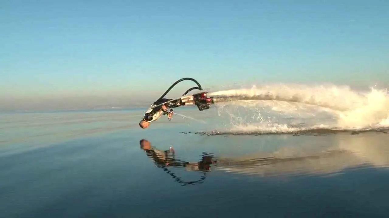 Сама идея полётов на водных струях не нова. Однако в предыдущих конструкциях насос всегда располагался в специально созданной для ранца миниатюрной лодке.