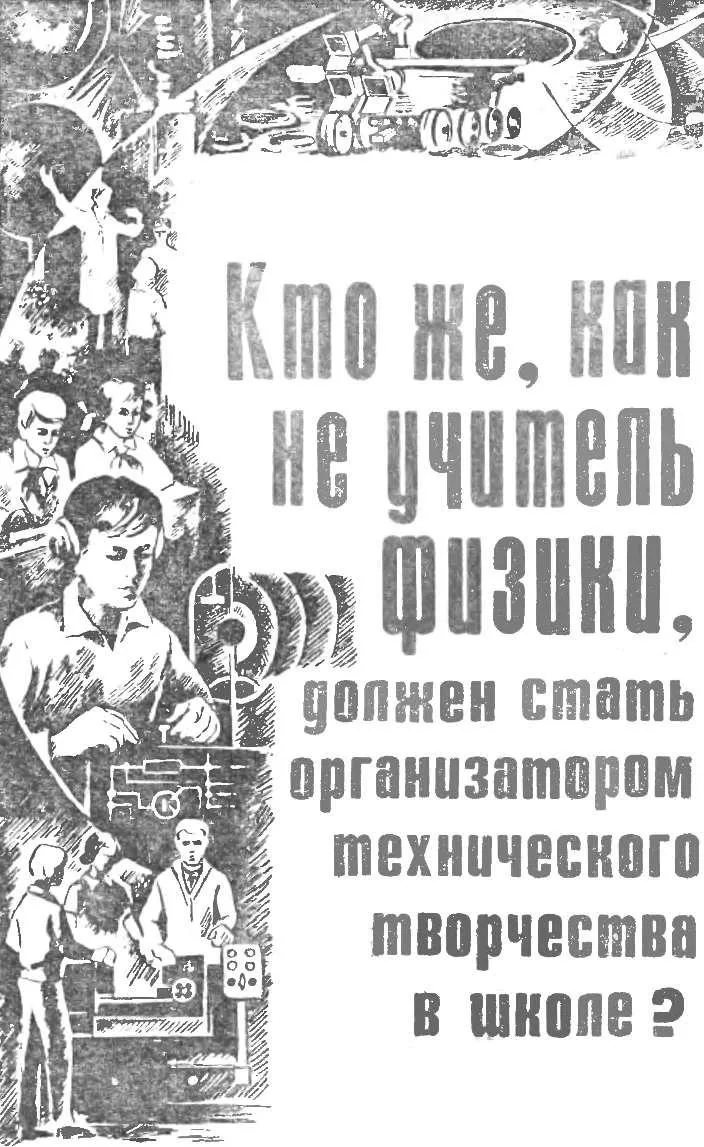 должен стать организатором технического творчества в школе? Именно так ответил мне студент Свердловского педагогического института Владимир Вяткин, когда я спросил, что заставляет его вести кружок автоматики в одной из свердловских школ и даже взять руководство этим кружком темой своей дипломной работы.