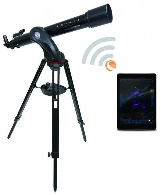 Celestron Cosmos 90 GT Wi-Fi Telescope — первый телескоп, рассчитанный на любителей посмотреть звездное небо. С его помощью изучение звездного пространства превращается в простое дело, не требующее специфических знаний и навыков. Он работает совместно с приложением для смартфонов, с которыми связывается через Wi-Fi.