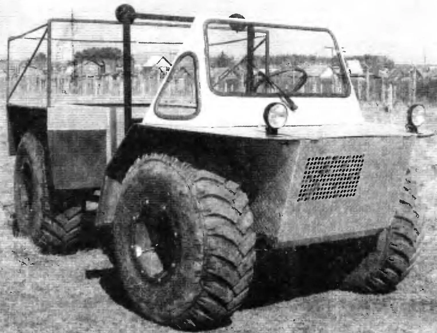 Несколько советов по выбору шин и колёс, исходя из местных дорожных (а точнее — внедорожных) условий предстоящей эксплуатации. Наши условия: лес, кочки, мох, оттаявшая мерзлота глубиной до полуметра, горные речки, сыпучий снег зимой, колеи от зимников, которые, как правило, проходят именно в том единственном месте, где можно проехать. Рекомендую выбирать такой наружный диаметр (диаметр качения) шины колеса, чтобы обеспечить просвет под машиной 350 — 400 мм: примерно такой, как у грузового автомобиля «Урал». Более высокие препятствия можно объехать. Колею колёс желательно тоже делать «ураловскую», иначе можно собрать всё, что не выломали эти вездеходы. Давление в шинах для передвижения по мху — 0,15 — 0,25 атмосферы, по дороге — 0,35 — 0,55. Не гонитесь за шириной шин колёс: на снегу при недостатке мощности они хуже узких, к тому же уменьшают полезную площадь самой машины и труднее управляются.